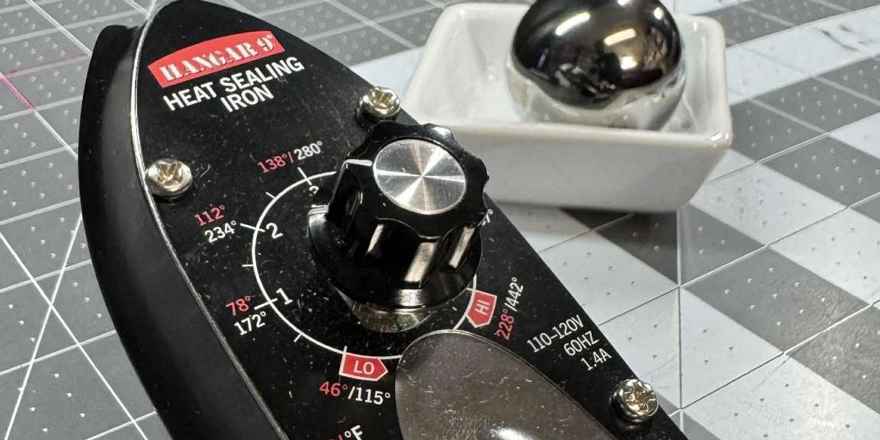 Analog tack irons (pictured) are not as common anymore. Most tack irons online are digital now. The minimal setting for a digital tack iron is 212F. Always use the lowest setting. Never go above 220F or you can streatch/scorch the paper.